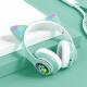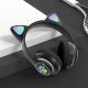 Casque stéréo Bluetooth sans fil oreilles de chat électroluminescents avec support carte TF
